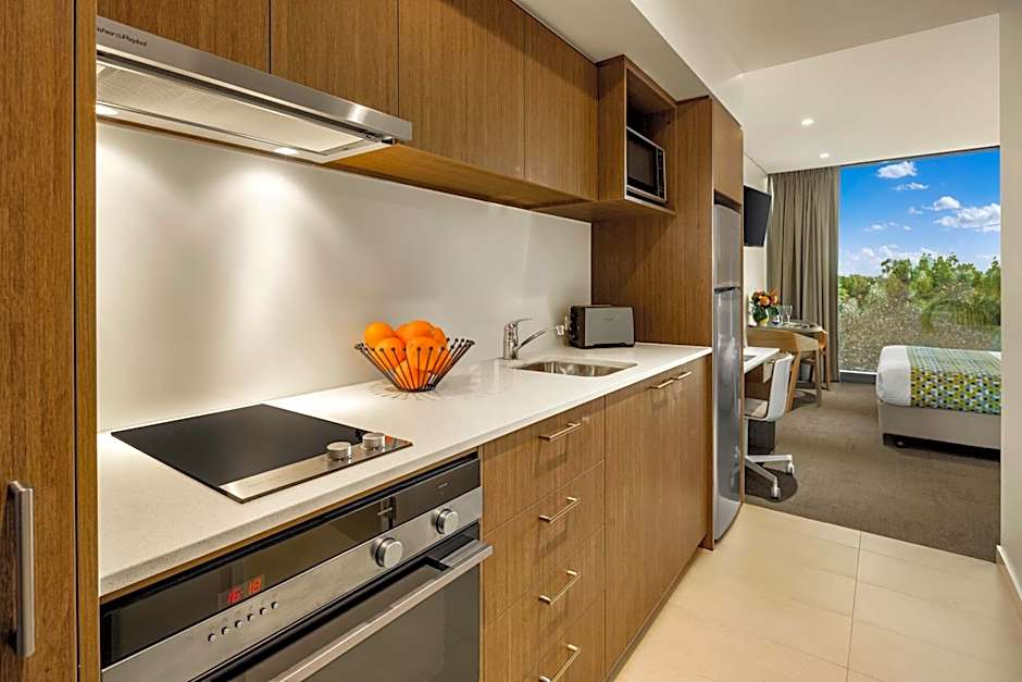 This Executive Studio features a living area with a flat-screen TV. It also includes a kitchenette with a dishwasher and a full-sized refrigerator. Air-conditioning, a hairdryer and a bathroom are provided.